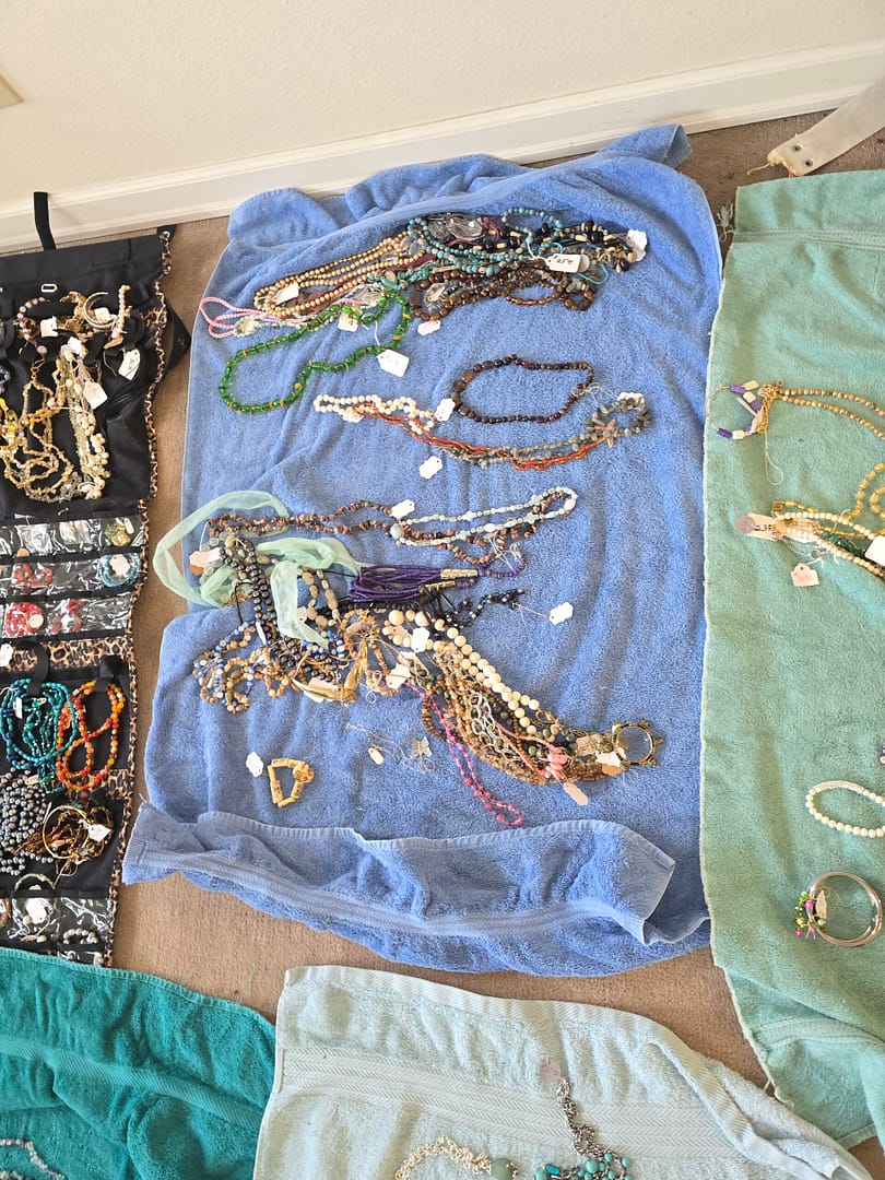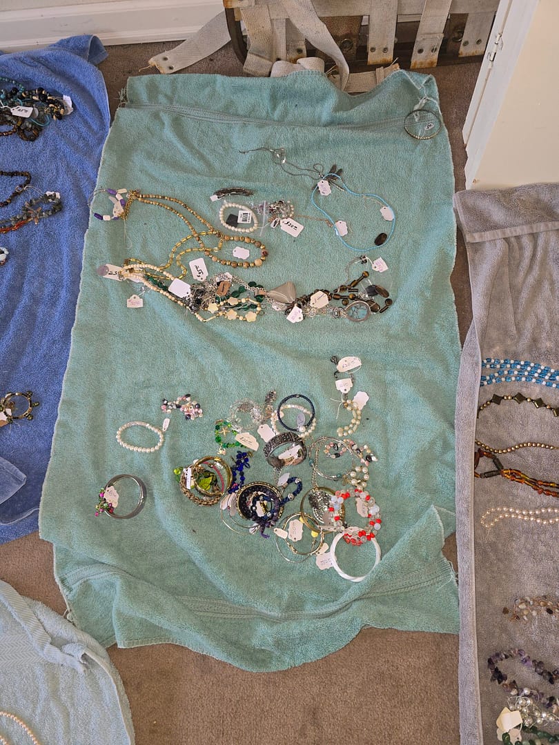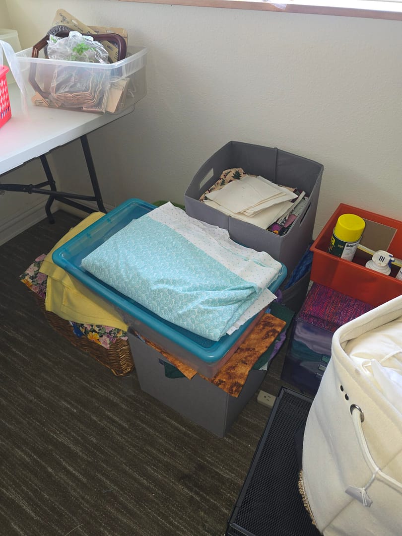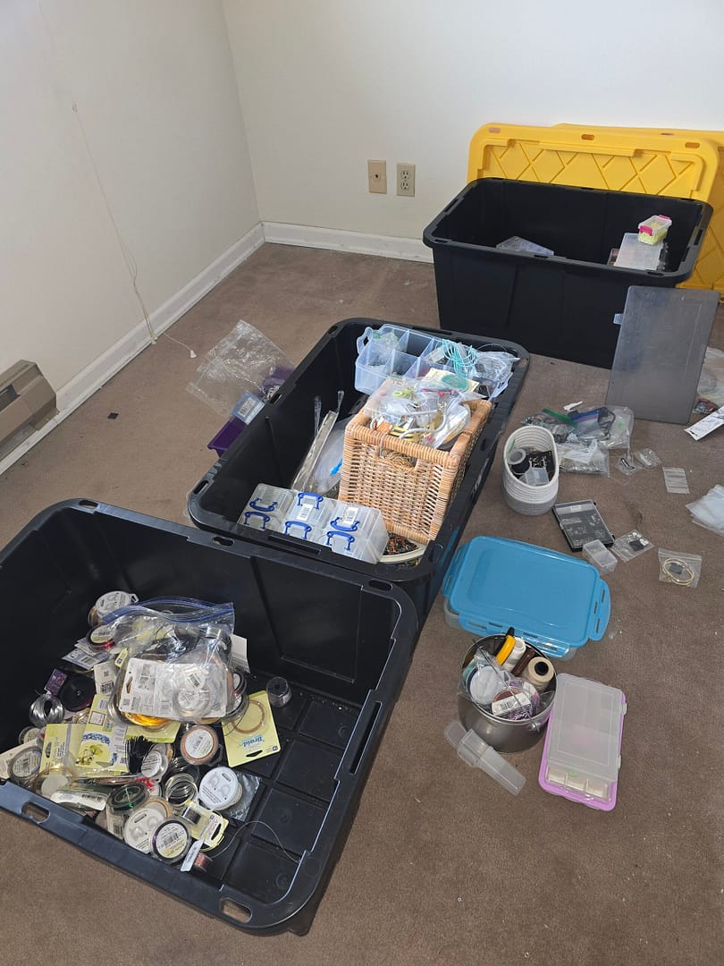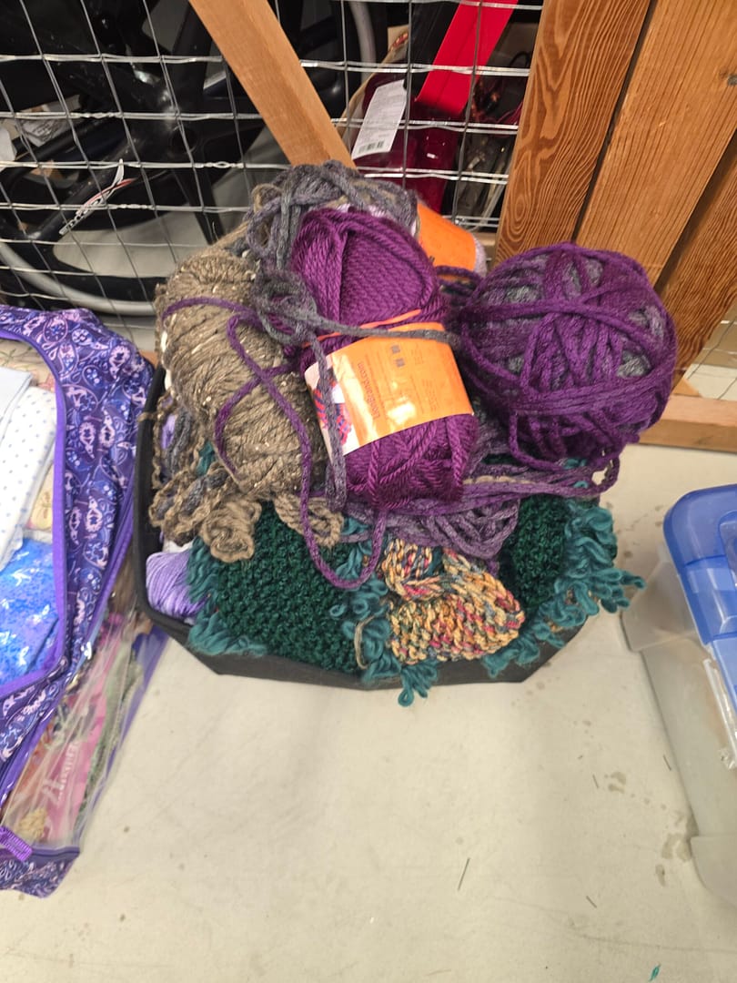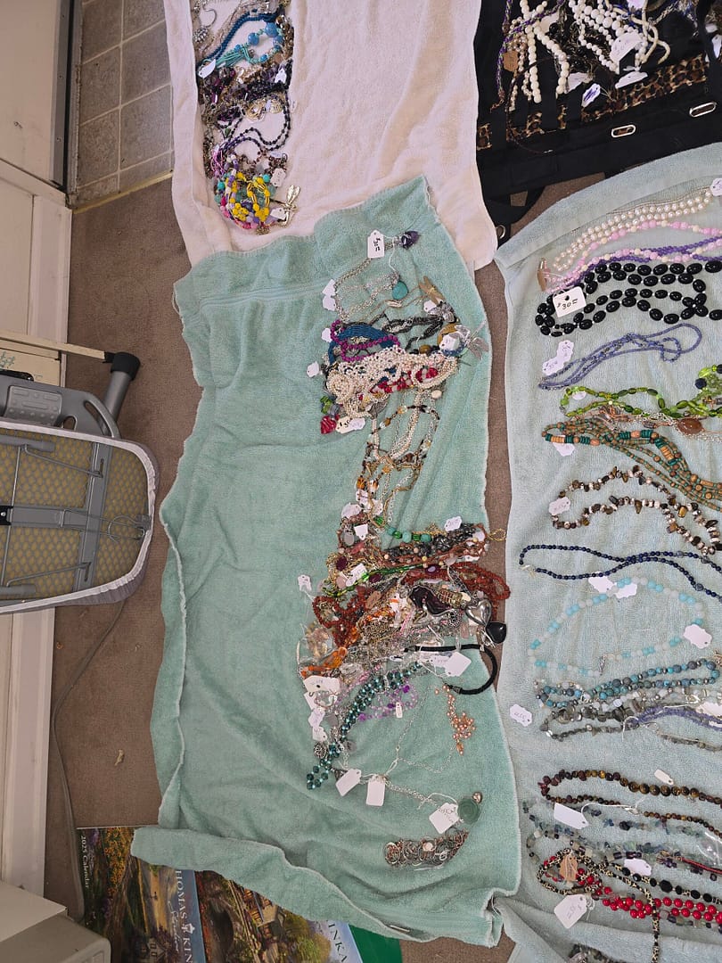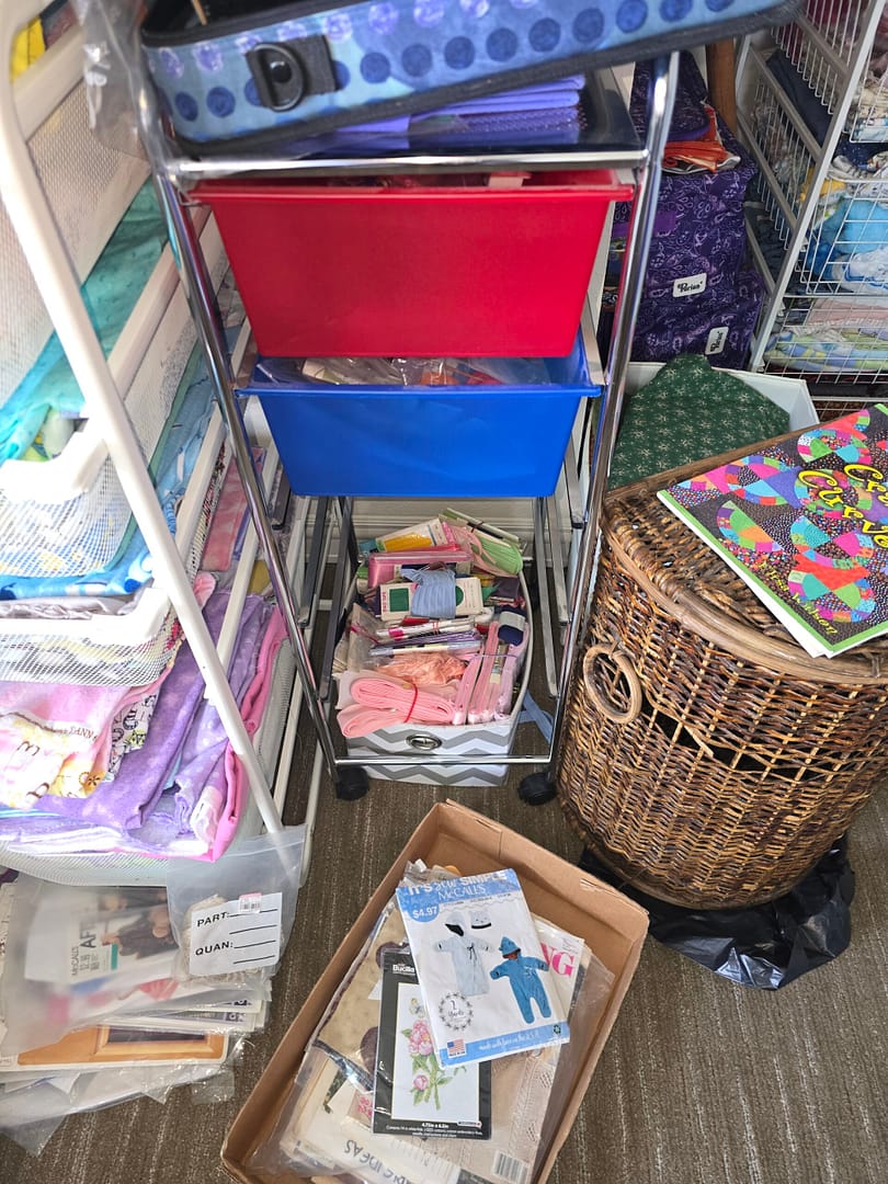 Crafters and quilters, this is your dream sale!! Bins upon bins of fabric, yarn, beading, jewelry-making supplies, plus handmade costume jewelry, and ohhhhhh so much more!!