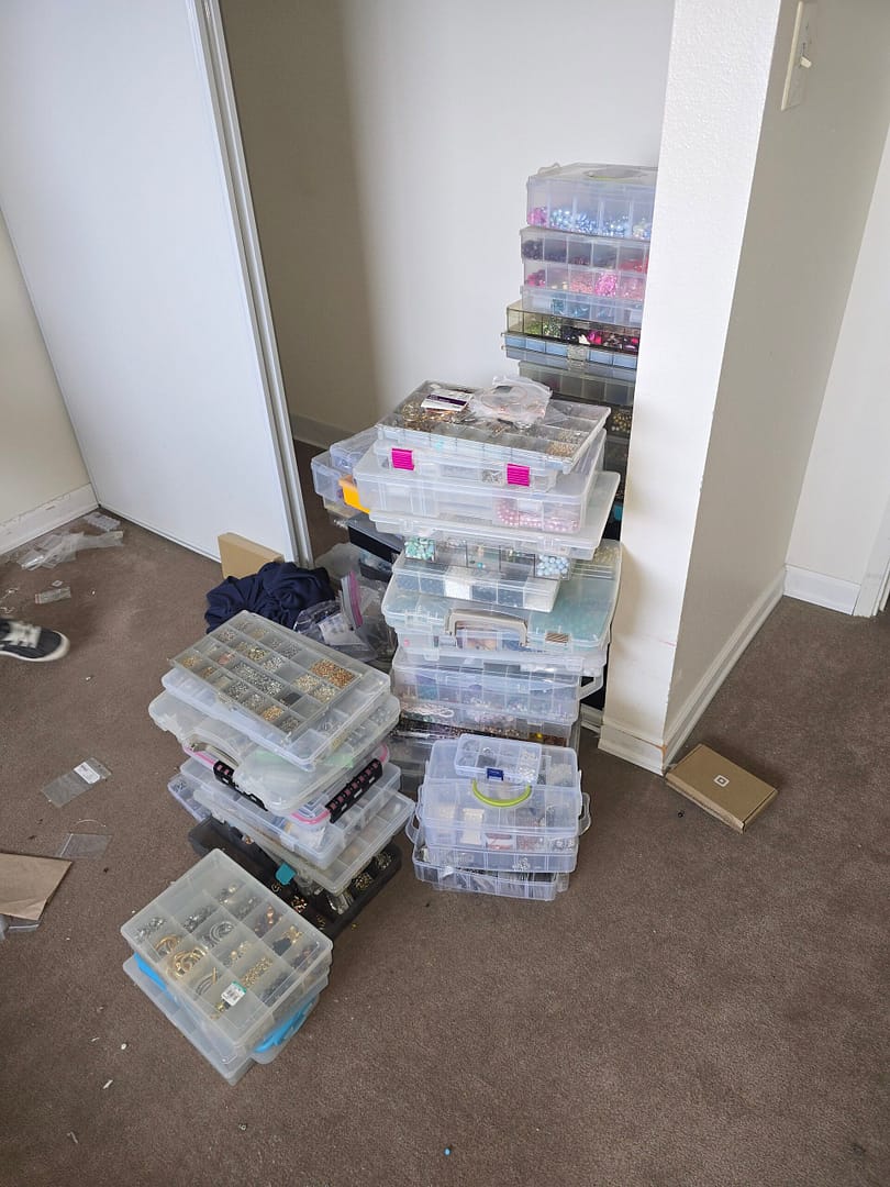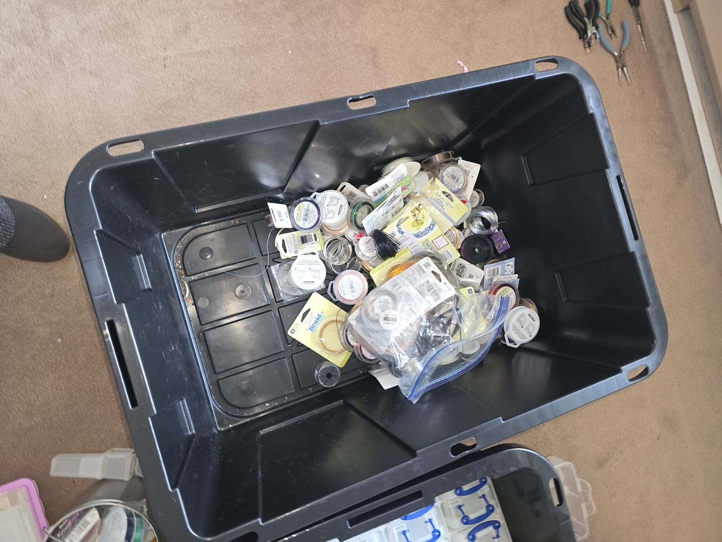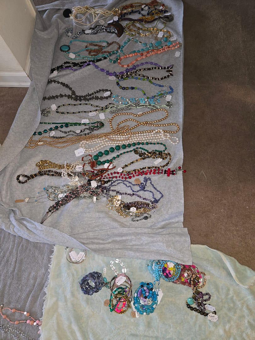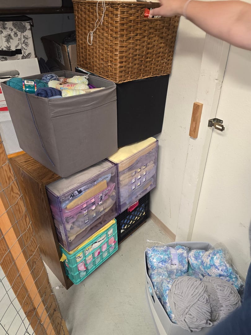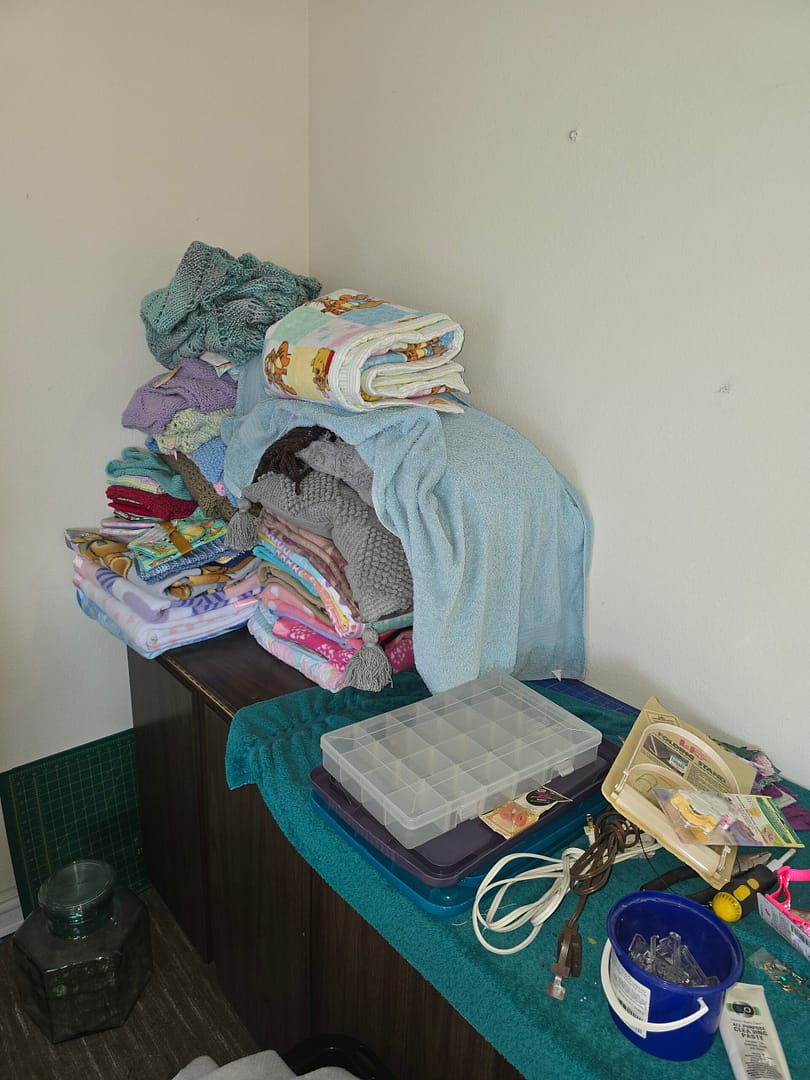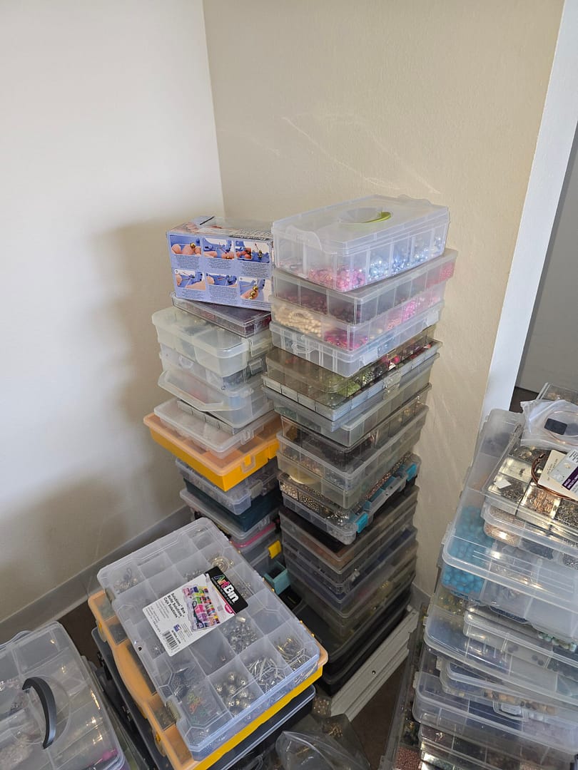 Crafters and quilters, this is your dream sale!! Bins upon bins of fabric, yarn, beading, jewelry-making supplies, plus handmade costume jewelry, and ohhhhhh so much more!!